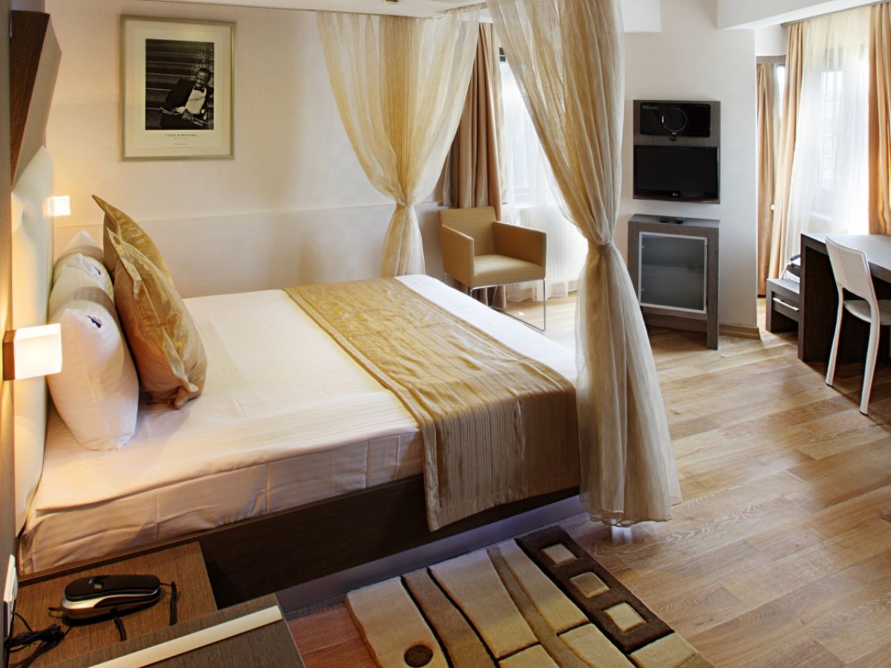 Each of the 8 luxurious rooms is named after a different world-famous jazz artist, who left a mark on jazz music history. The moment you enter a room, you will be welcomed by the memorable melodies and true spirit of the artist that room is named after. The room walls are decorated with album covers, concert posters and photographs.