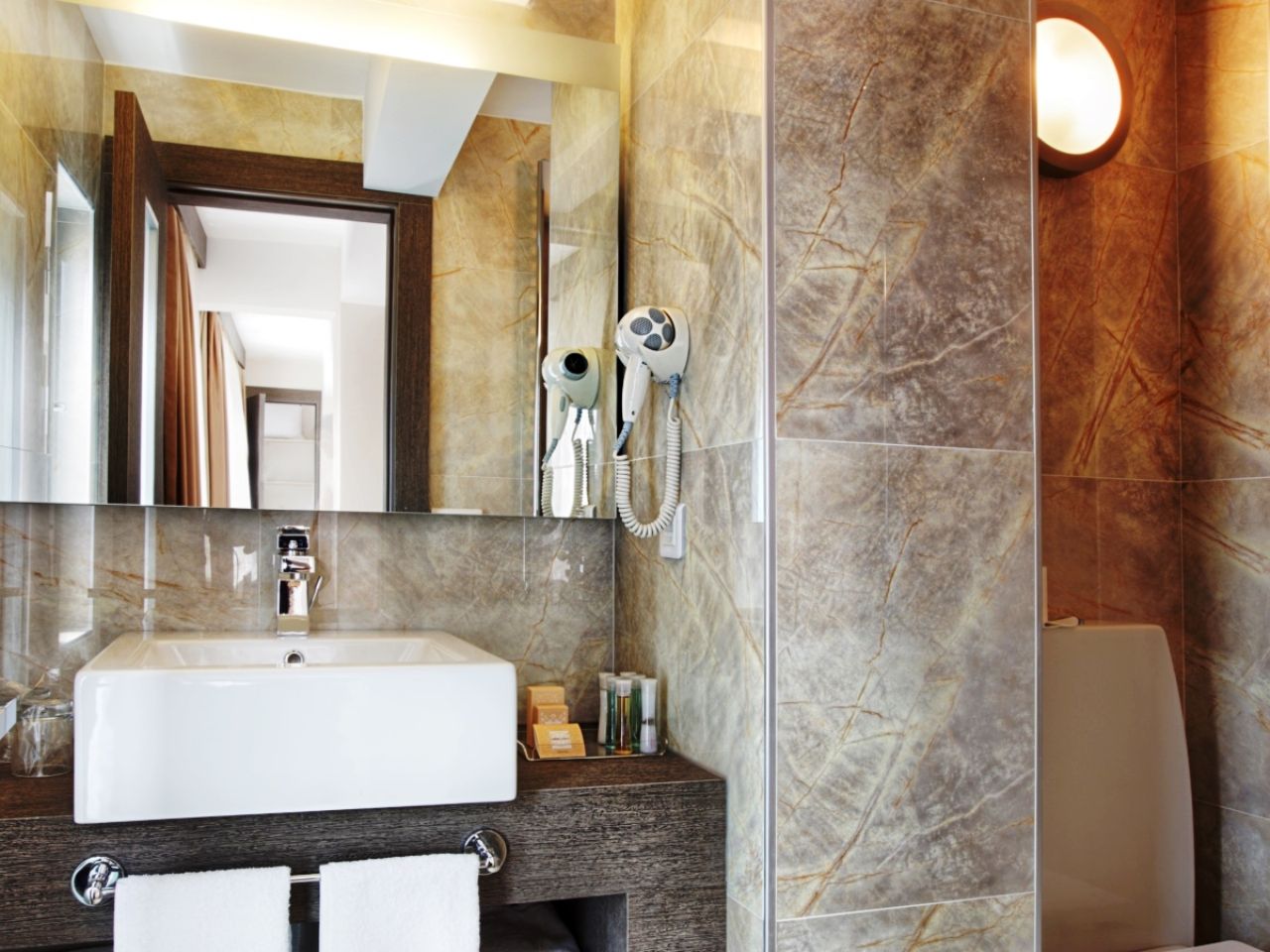 All bathrooms feature rain showers “only”; and come with hairdryers, scales, bathrobes. Please note that, each room features 1 double bed, with no possibility for an additional bed. Baby cribs are available free of charge for use in these rooms.